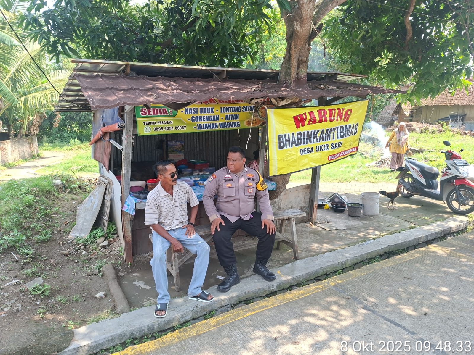 Cilegon ~  Bhabinkamtibmas Polsek Bojonegara Polres Cilegon Polda Banten Sambang dan silaturahmi dengan masyarakat merupakan salah satu tugas seorang bhabinkamtibmas untuk mengetahui situasi Kamtibmas Desa binaan dalam menjalin silaturahmi dengan Warga Desa. Ukirsari  di Warung Bhabinkamtibmas, Minggu (12/10/2025).