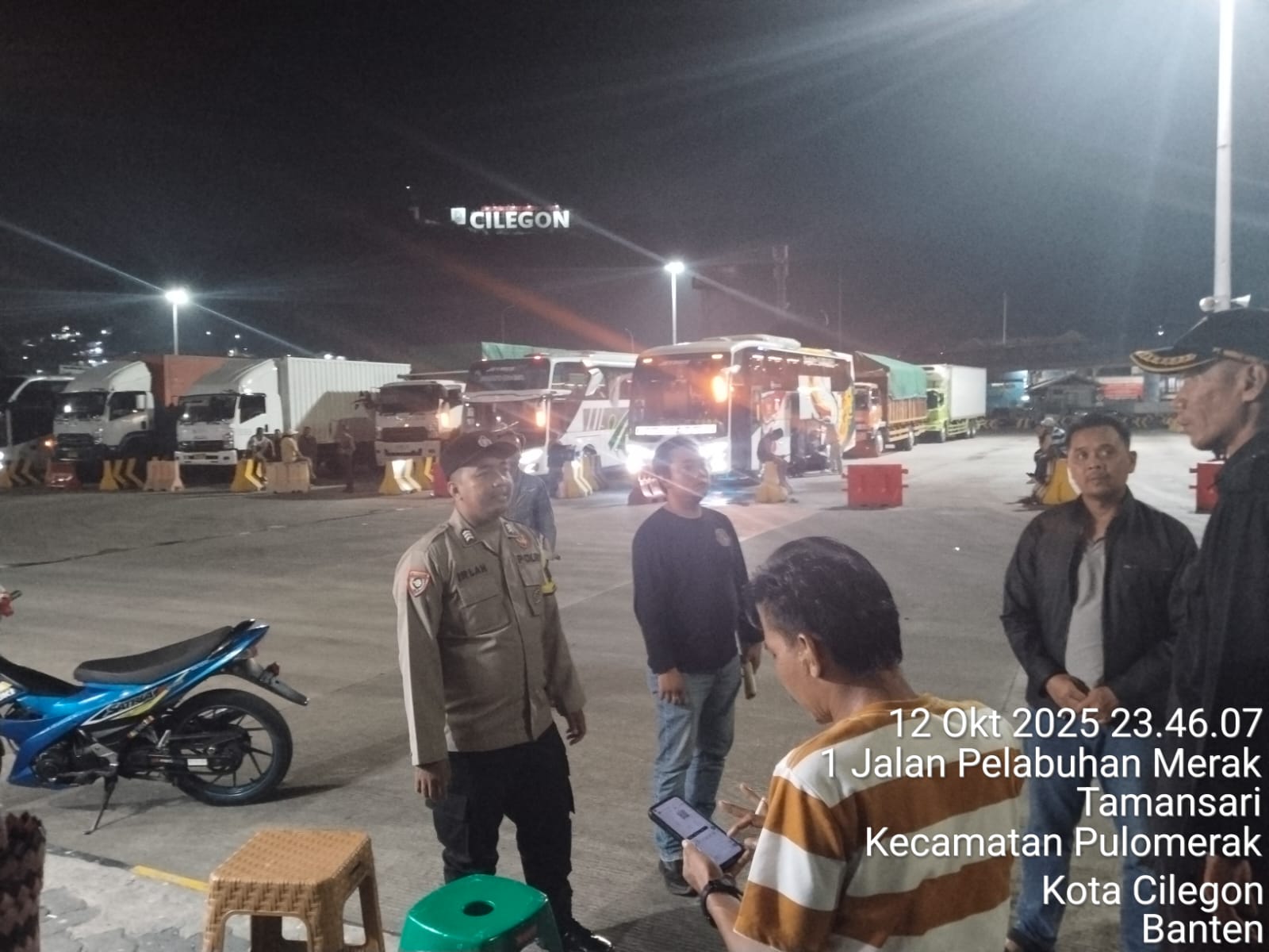 Cilegon - Personil Polsek Kskp Merak Polres Cilegon melaksanakan patroli di kawasan pelabuhan merak memberikan rasa aman dan damai, Senin (13/10/2025)