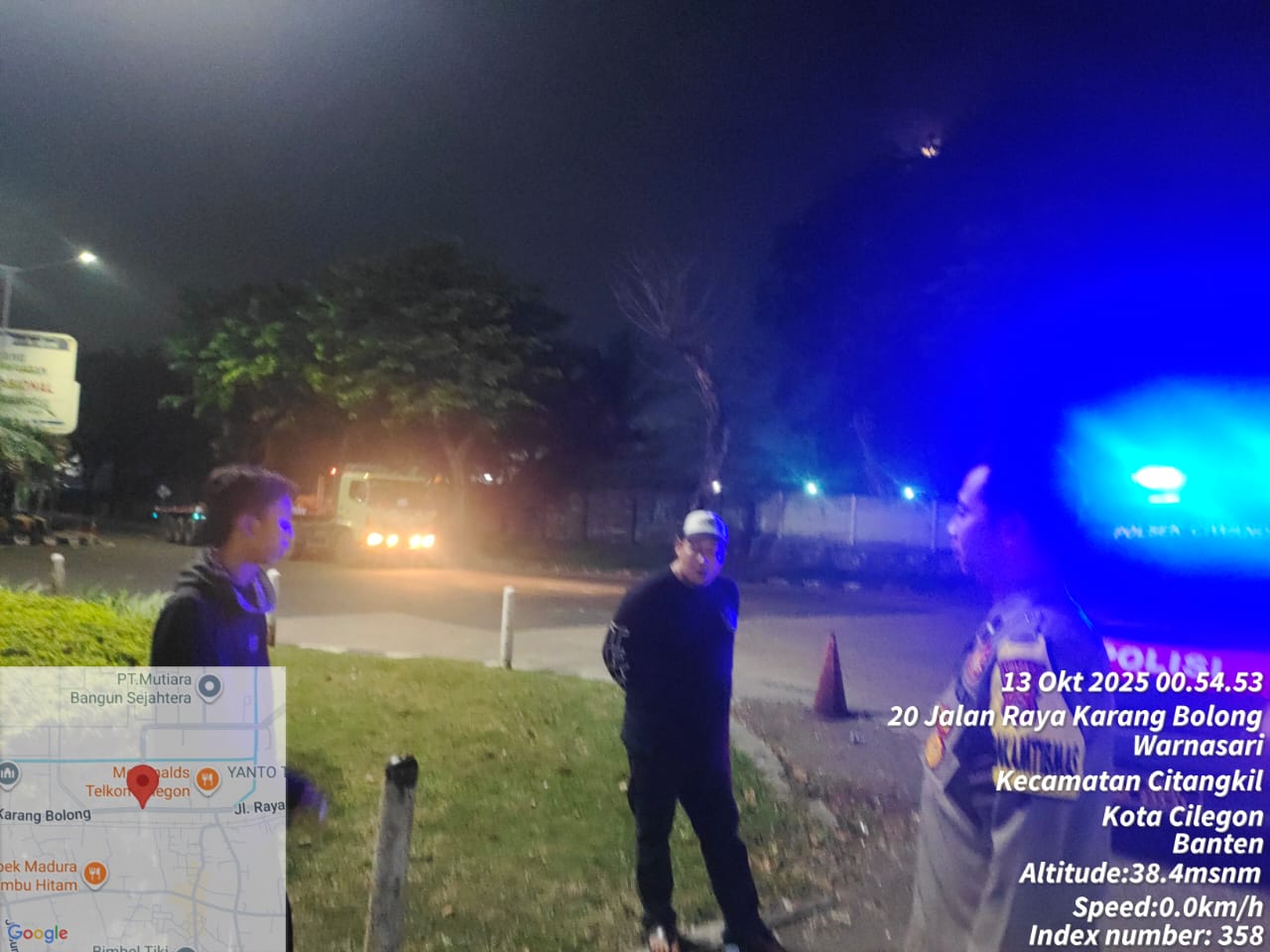 Cilegon - Personil Polsek Ciwandan Polres Cilegon Polda Banten Dalam Pelaksanaan Kegiatan Patroli dengan menyalakan lampu rotator berwarna biru di Daerah Hukum Polsek Ciwandan Polres Cilegon Polda Banten dari malam hingga dini hari, dalam rangka menciptakan situasi aman dan kondusif, Senin (13/10/2025).