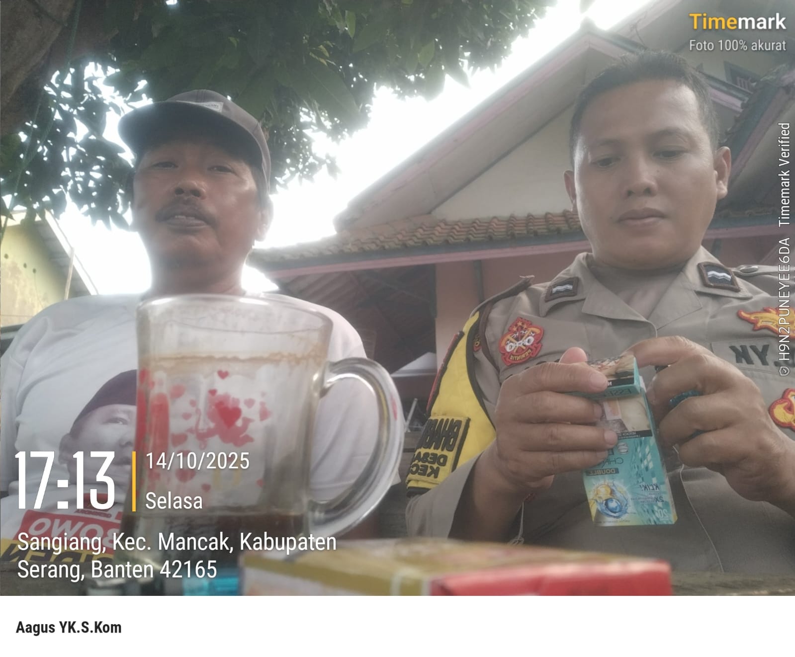 Mancak - Sebagai Pengemban Fungsi Harkamtibmas, Bhabinkamtibmas Polsek Mancak Kegiatan Melaksanakan Kegiatan Sambang dan Dialogis Kepada Warga untuk ciptakan situasi aman dan kondusif di daerah  kec.mancak Kab. Serang. SELASA,(14/10/2025).