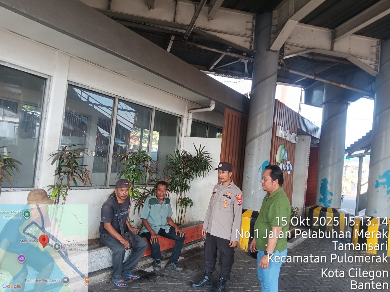 Cilegon - Personel Polsek Kskp Merak Polres Cilegon Polda Banten melaksanakan sambang dan patroli kawasan pelabuhan merak dalam rangka menjaga Harkamtibmas di Kawasan Pelabuhan Merak, Rabu (15/10/2025).