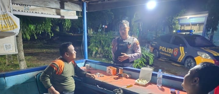 Personel Samapta Polsek Purwakarta, Bripka Albert, melaksanakan patroli rutin dengan menyambangi pos-pos ronda warga di wilayah hukum Polsek Purwakarta