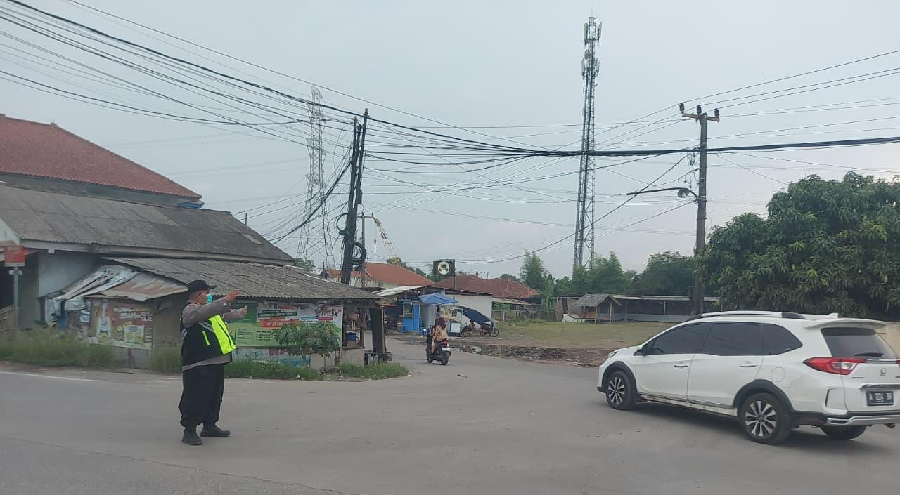Bripka Heru Polsek Bojonegara Polres Cilegon Strong Poin Atur Lalu-Lintas Dalam Pelayanan Pagi Hari