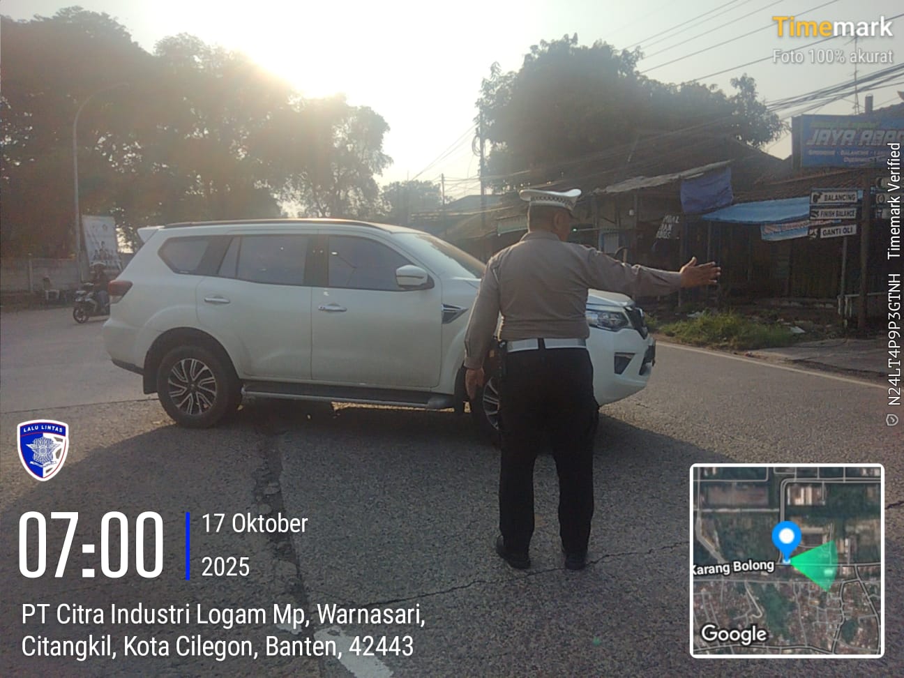 Cilegon - Personil  Polsek Ciwandan Polres Cilegon Polda Banten melaksanakan giat Strong Poin Pengaturan Lalu Lintas Disimpang Brown Kelurahan Gunung Sugih guna menciptakan ketertiban, keamanan dan Kelancaran Lalu-lintas bagi masyarakat, Jum’at (17/10/2025).