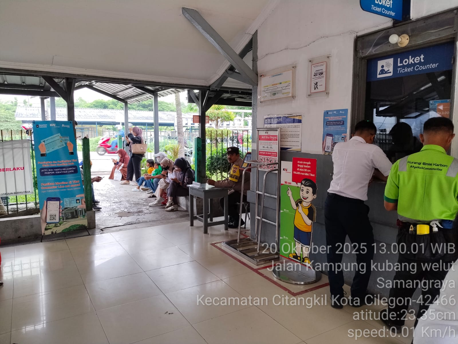 Cilegon - Personil Polsek Ciwandan Polres Cilegon Polda Banten melaksanakan giat patroli Dan dengan sambangi Petugas Stasiun Kereta Api dan penjaga pintu perlintasan kereta api, Senin (20/10/2025).