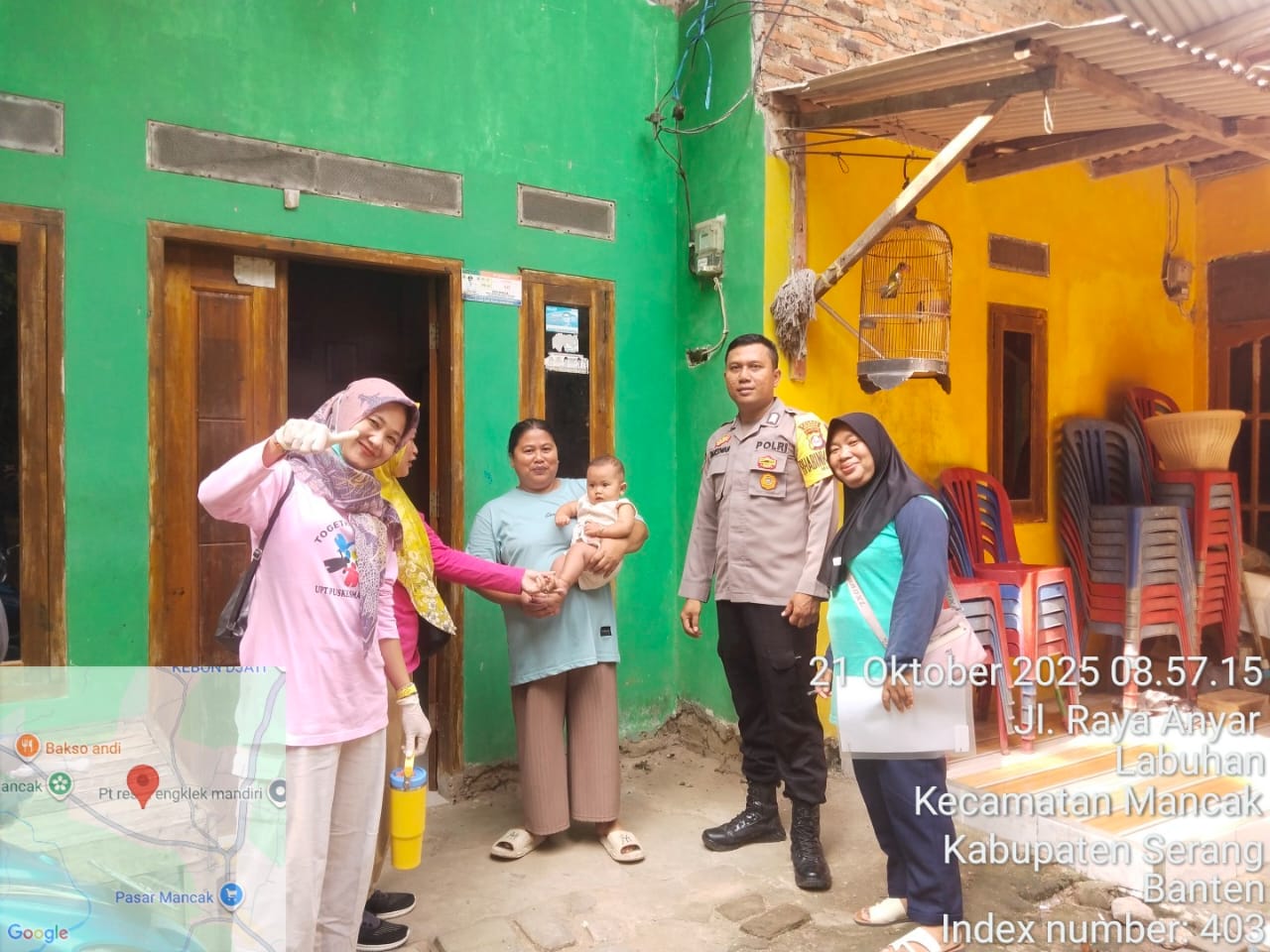 Mancak - Sebagai Pengemban Fungsi Harkamtibmas, Bhabinkamtibmas Melaksanakan Kegiatan sambang Pendampingan pelaksanaan grebek atau kejar imunusi yang dilaksanakan oleh puskesmas Mancak, serta melaksanakan giat program KAPOLRES CILEGON TRENDING dan giat program QUICK WIN PRESISI  SELASA,(21/10/2025).