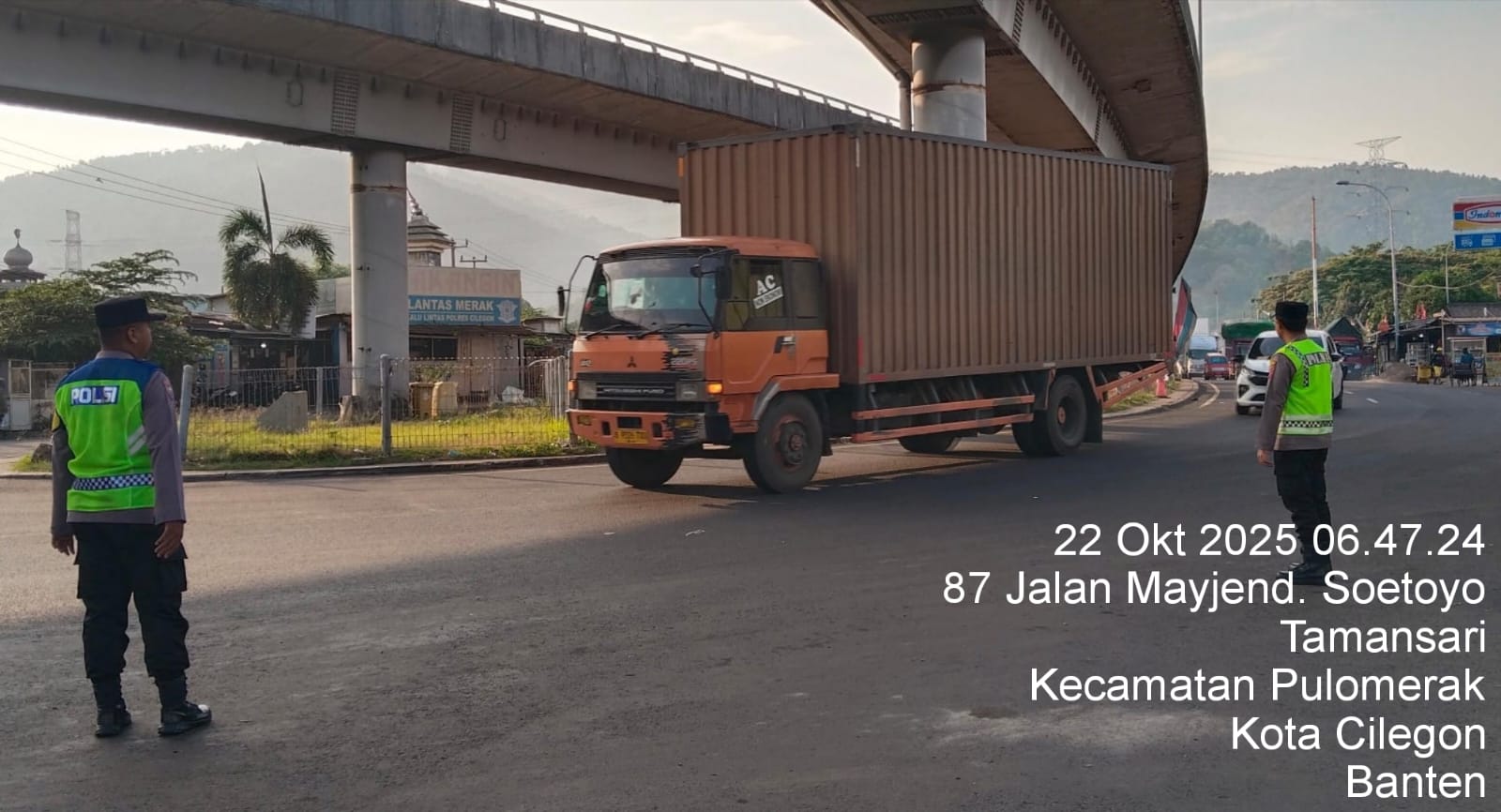 Pengaturan Antrian Kendaraan, Polsek KSKP Merak Lancarkan Arus di Pelabuhan Merak