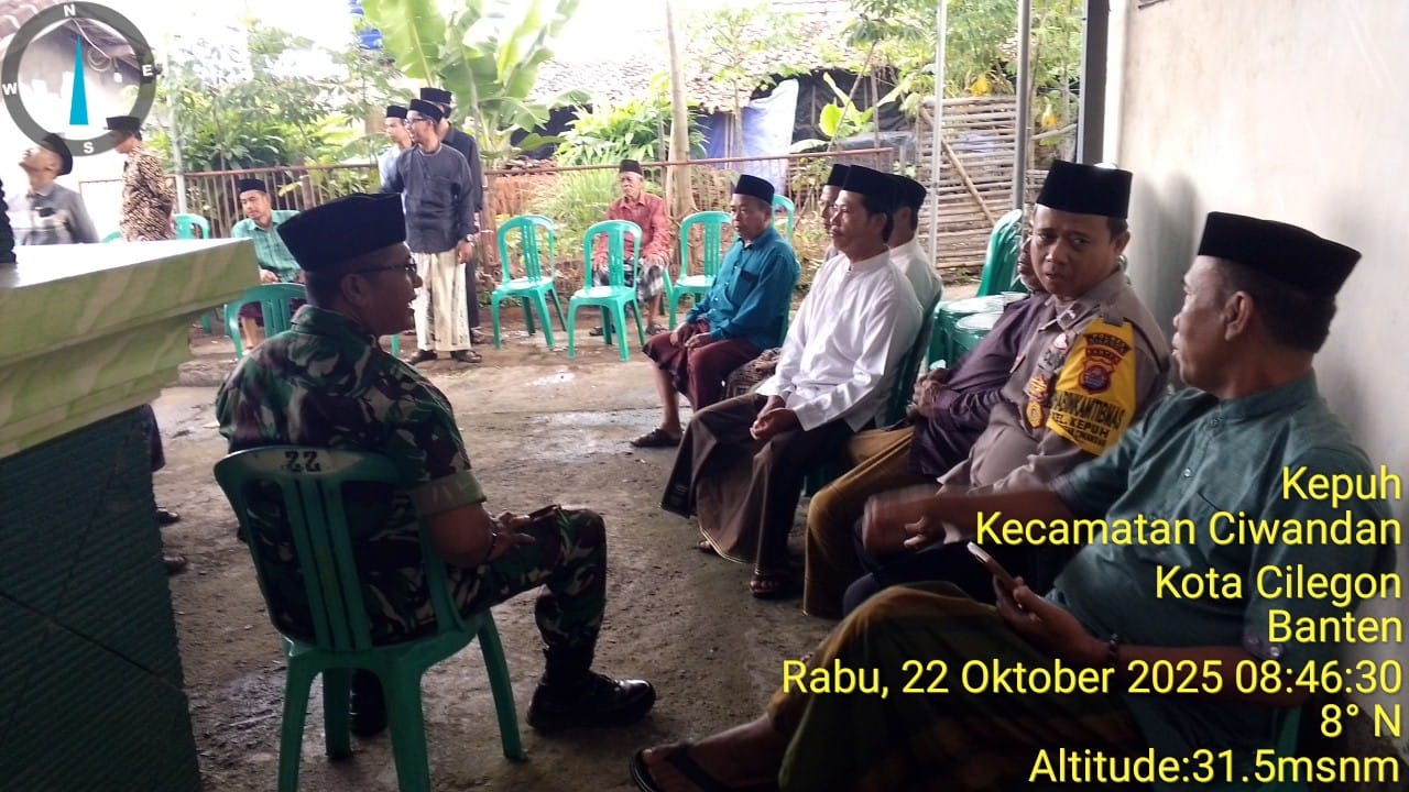 Cilegon - Salah Satu Wujud Empati Kepedulian Dari Bhabinkamtibmas Kepada warga Masyarakat di daerah binaanya, Bhabinkamtibmas Kelurahan Kepuh Polsek Ciwandan Polres Cilegon Polda Banten AIPDA Mere Erlansyah melaksanakan takziah ke salah satu warga yang meninggal dunia, Rabu (22/10/2025).