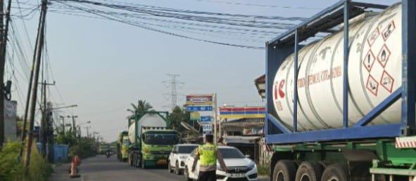 Bripka Zenal bersama Brigadir Chairuman Lakukan Pengamanan dan Pengaturan Lalin di Di Persimpang Wadas Bojonegara