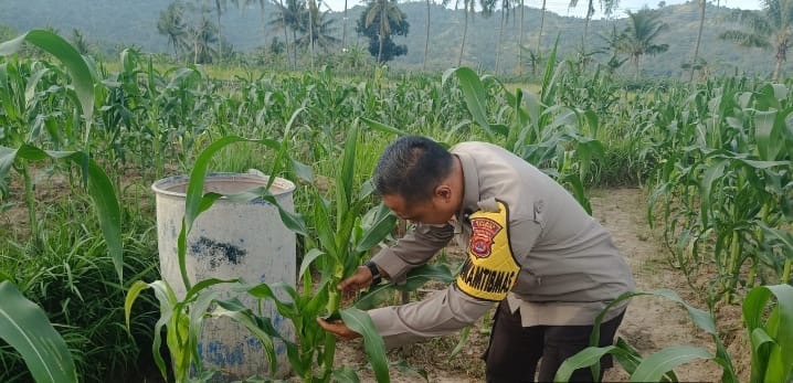 Bhabinkamtibmas Kelurahan Pabean, Kecamatan Purwakarta, melaksanakan kegiatan pengecekan tanaman jagung di wilayah binaannya. Kegiatan ini merupakan bagian dari upaya mendukung program ketahanan pangan
