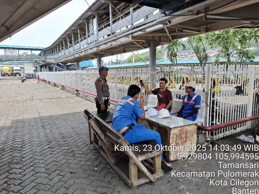 Cilegon - Personel Polsek Kskp Merak Polres Cilegon Polda Banten melaksanakan sambang dan patroli kawasan pelabuhan merak dalam rangka menjaga Harkamtibmas di Kawasan Pelabuhan Merak, Kamis (23/10/2025).
