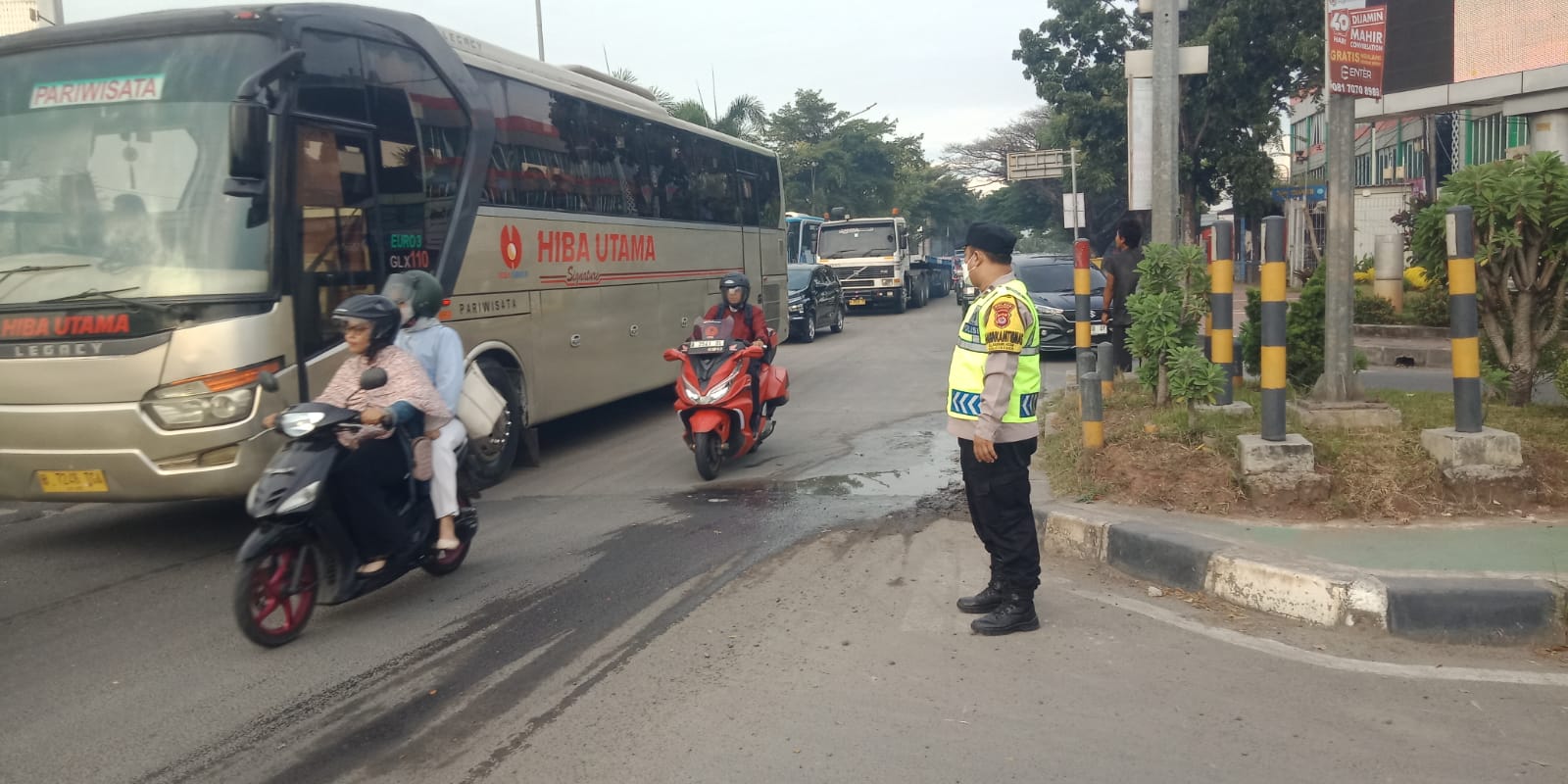 Cilegon - Pelayanan Kepada Warga Masyarakat dan Guna menciptakan situasi lalu lintas yang aman, tertib dan lancar, Personel Polsek Cibeber Polres Cilegon Polda Banten secara rutin melaksanakan pengaturan lalu lintas di sekitar Traffic Light PCI kota Cilegon.