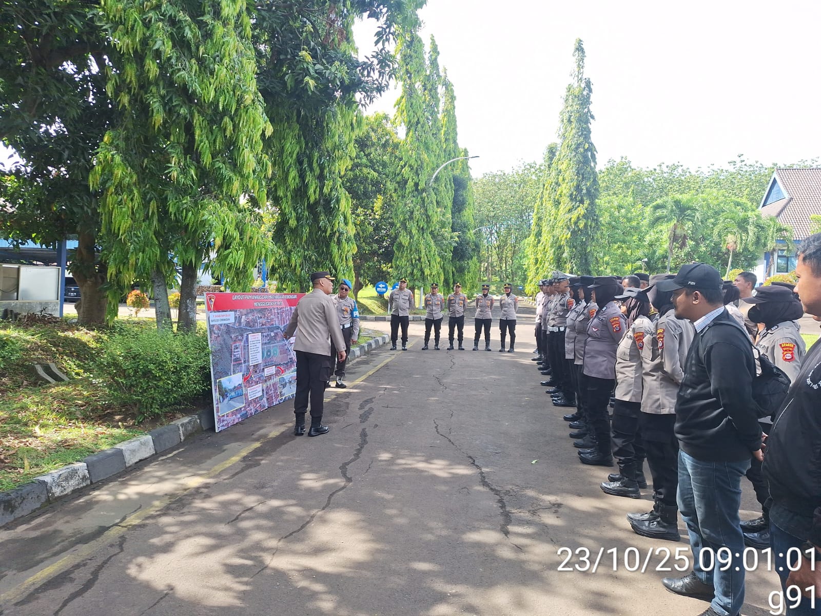 Cilegon – Sebelum melaksanakan pengamanan unjuk rasa,Kapolsek Ciwandan Polres Cilegon Polda Banten KOMPOL Andi Suherman Pimpin Apel Kesiapan Pelaksanaan Pengamanan unjuk rasa dan berikan Arahan Kepada Personil Yang Melaksanakan Pengamanan Unjuk Rasa, Kamis (23/10/2025).