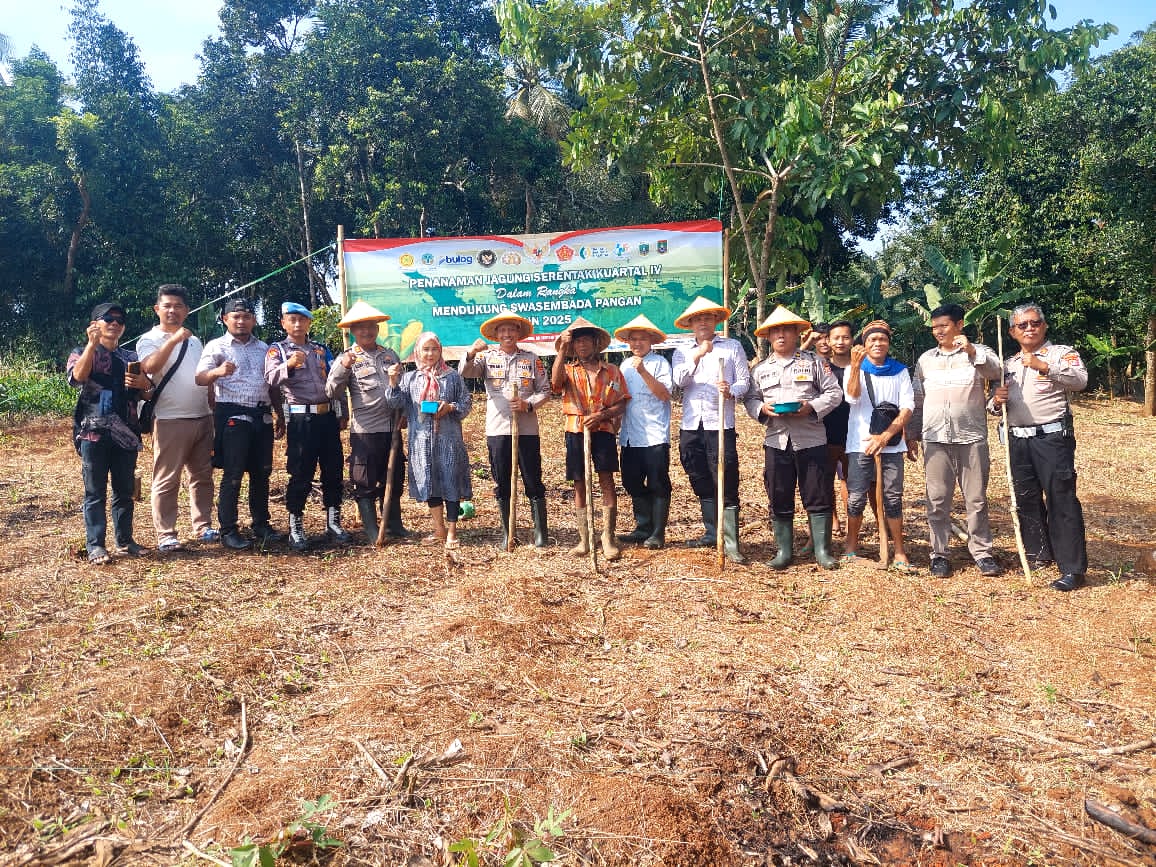 Penanaman Jagung serentak Kuartal IV Seluruh Indonesia di lahan milik kelompok tani Bpk. Maman Rt. 01/01 Kp. Macute Kel. Angsana Kec. Mancak-Serang daerah hukum Polres Cilegon.