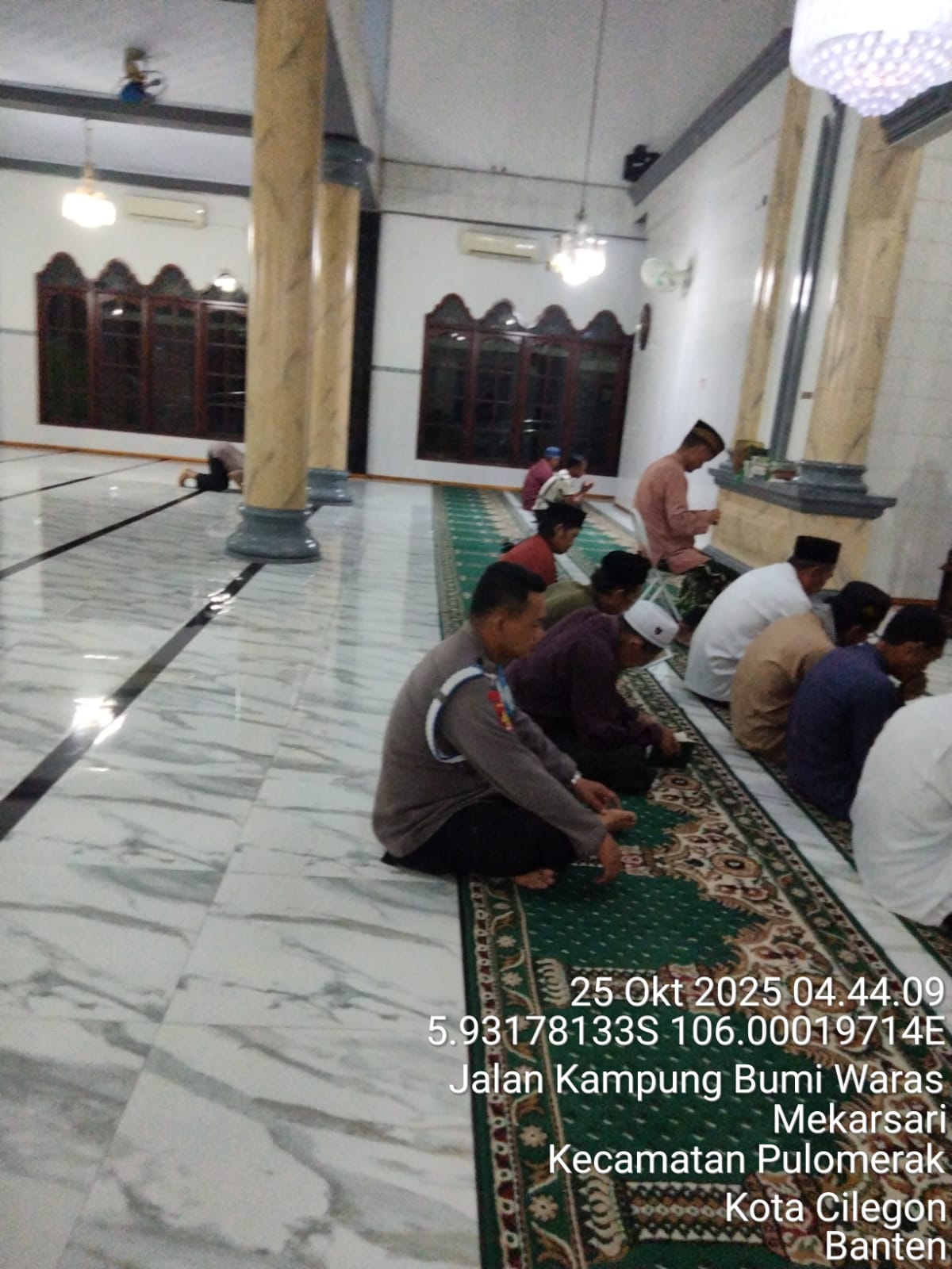 Cilegon – Personil Kskp Merak Polres Cilegon Polda Banten menggelar kegiatan Pembinaan Rohani dengan shalat subuh keliling di Masjid Yang ada Di Daerah hukum Polsek Kp Merak Polres Cilegon Polda Banten, Jumat (24/10/2025).