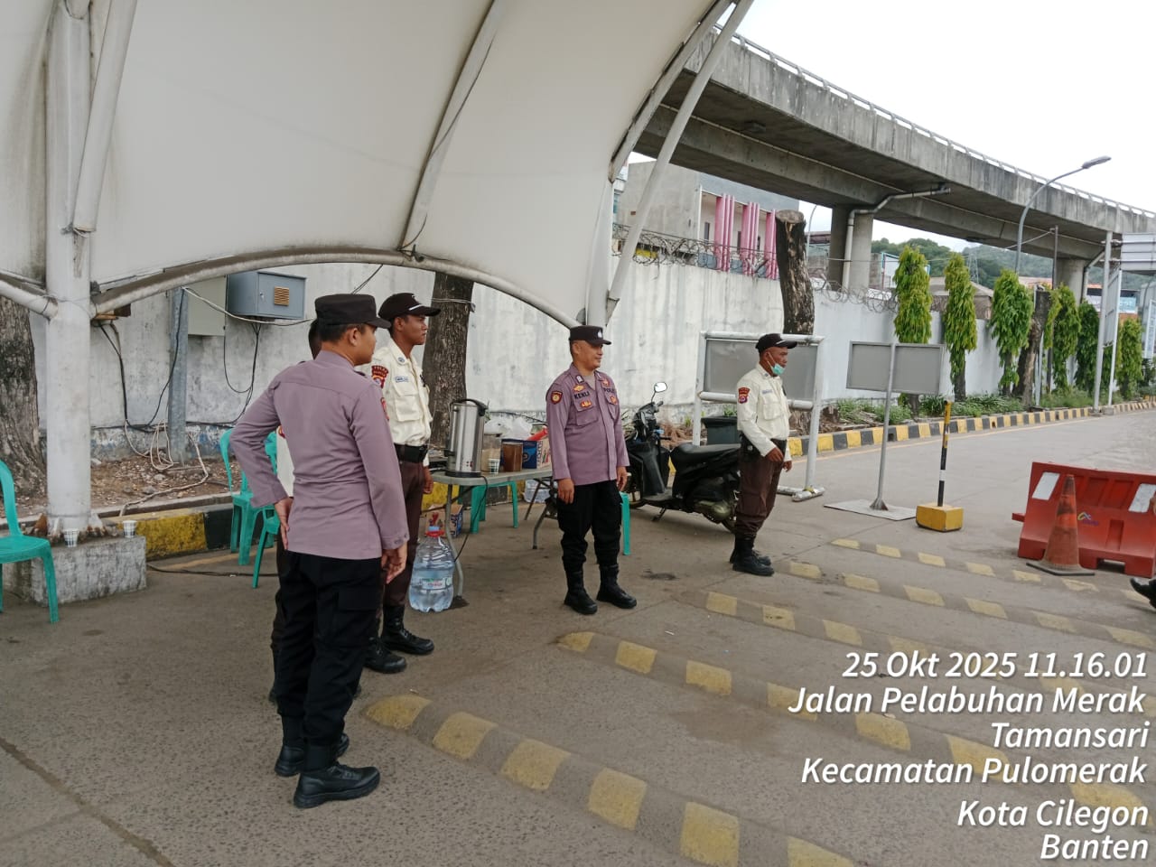 Cilegon - Personel Polsek Kskp Merak Polres Cilegon Polda Banten melaksanakan sambang dan patroli kawasan pelabuhan merak dalam rangka menjaga Harkamtibmas di Kawasan Pelabuhan Merak, Sabtu (25/10/2025).