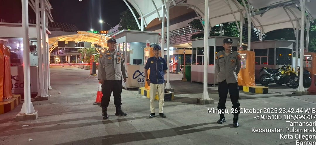 Cilegon - Personil Polsek Kskp Merak Polres Cilegon melaksanakan patroli di kawasan pelabuhan merak memberikan rasa aman dan damai, Senin (27/10/2025)