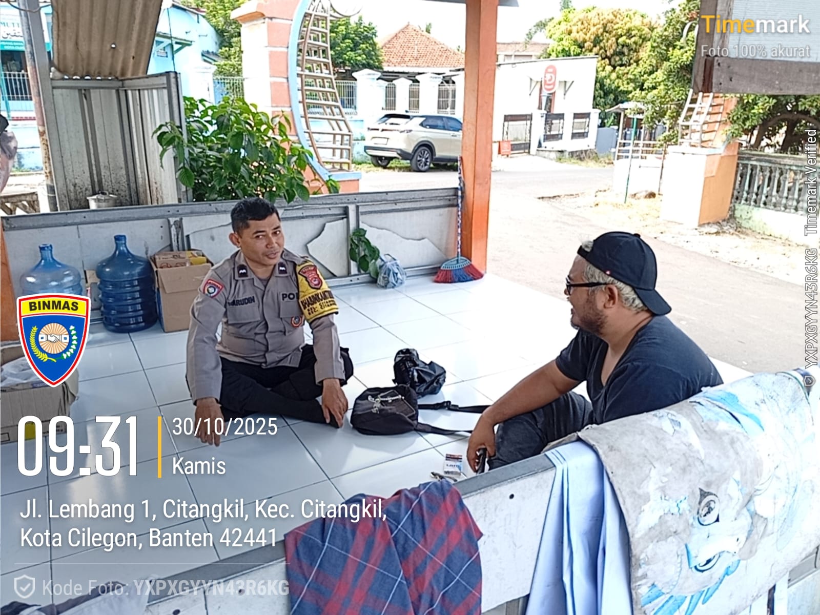 Cilegon - Personil Bhabinkamtibmas Polsek Ciwandan Polres Cilegon Polda Banten Menyampaikan Pesan Kamtibmas dan mengajak masyarakat terus aktif dalam kepedulian terhadap Pemeliharaan keamanan lingkungan di daerah Binaanya, Kamis (30/10/2025).