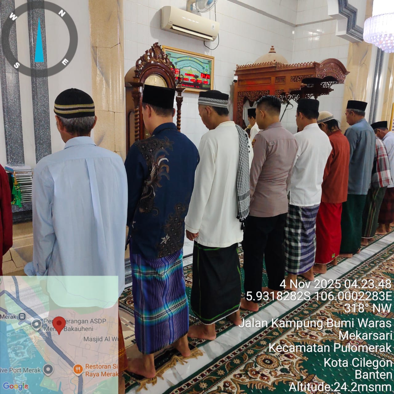Cilegon – Personil Kskp Merak Polres Cilegon Polda Banten menggelar kegiatan Pembinaan Rohani dengan shalat subuh keliling di Masjid Yang ada Di Daerah hukum Polsek Kp Merak Polres Cilegon Polda Banten, Selasa (04/11/2025).