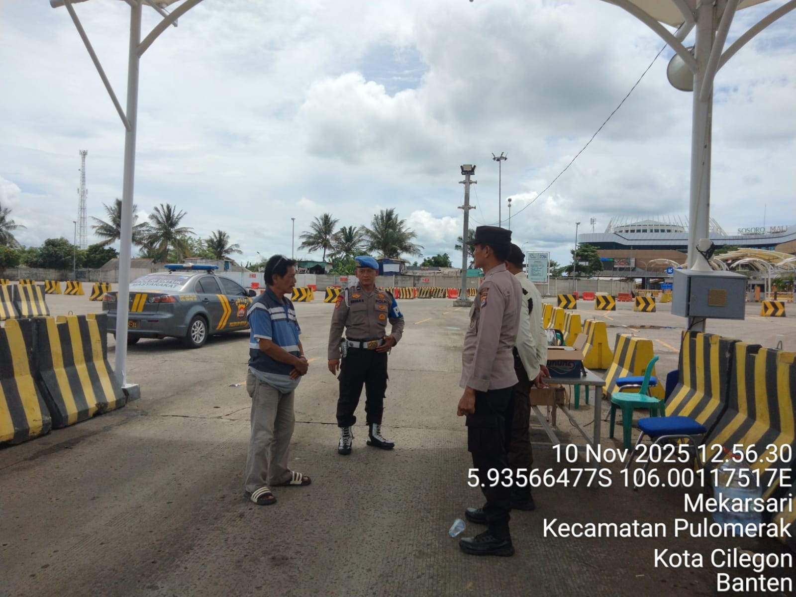 Cilegon - Personel Polsek Kskp Merak Polres Cilegon Polda Banten melaksanakan sambang dan patroli kawasan pelabuhan merak dalam rangka menjaga Harkamtibmas di Kawasan Pelabuhan Merak, Senin (10/11/2025).