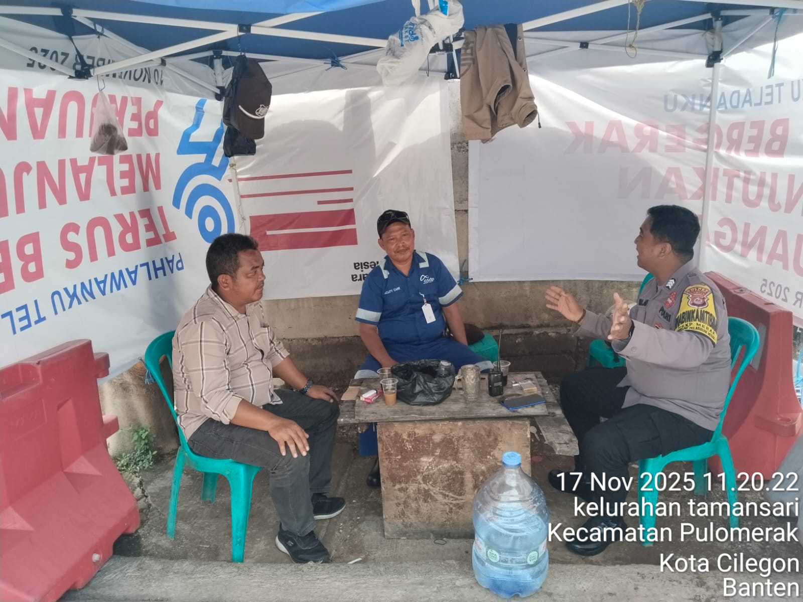 Cilegon - Personel Polsek Kskp Merak Polres Cilegon Polda Banten melaksanakan sambang dan patroli kawasan pelabuhan merak dalam rangka menjaga Harkamtibmas di Kawasan Pelabuhan Merak, Senin (17/11/2025).