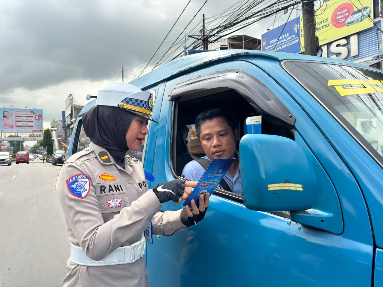 Satlantas Cilegon Bagikan Leaflet dan Imbauan Keselamatan Kepada Pengendara