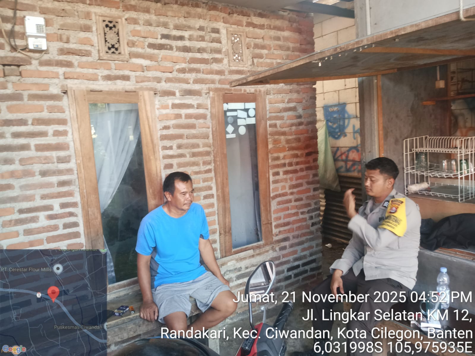 Cilegon - Bhabinkamtibmas Polsek Ciwandan Polres Cilegon Polda Banten Melaksanakan Sambang Dialogis Sambil Ngopi Bareng Warga sekaligus Bahas Ketertiban Dan Keamanan Lingkungan Binaan, Jum'at (21/11/2025).