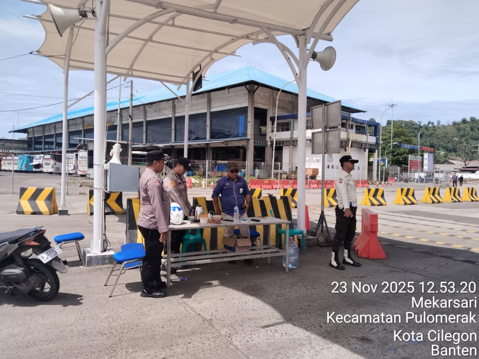 Cilegon - Personel Polsek Kskp Merak Polres Cilegon Polda Banten melaksanakan sambang dan patroli kawasan pelabuhan merak dalam rangka menjaga Harkamtibmas di Kawasan Pelabuhan Merak, Minggu (23/11/2025).