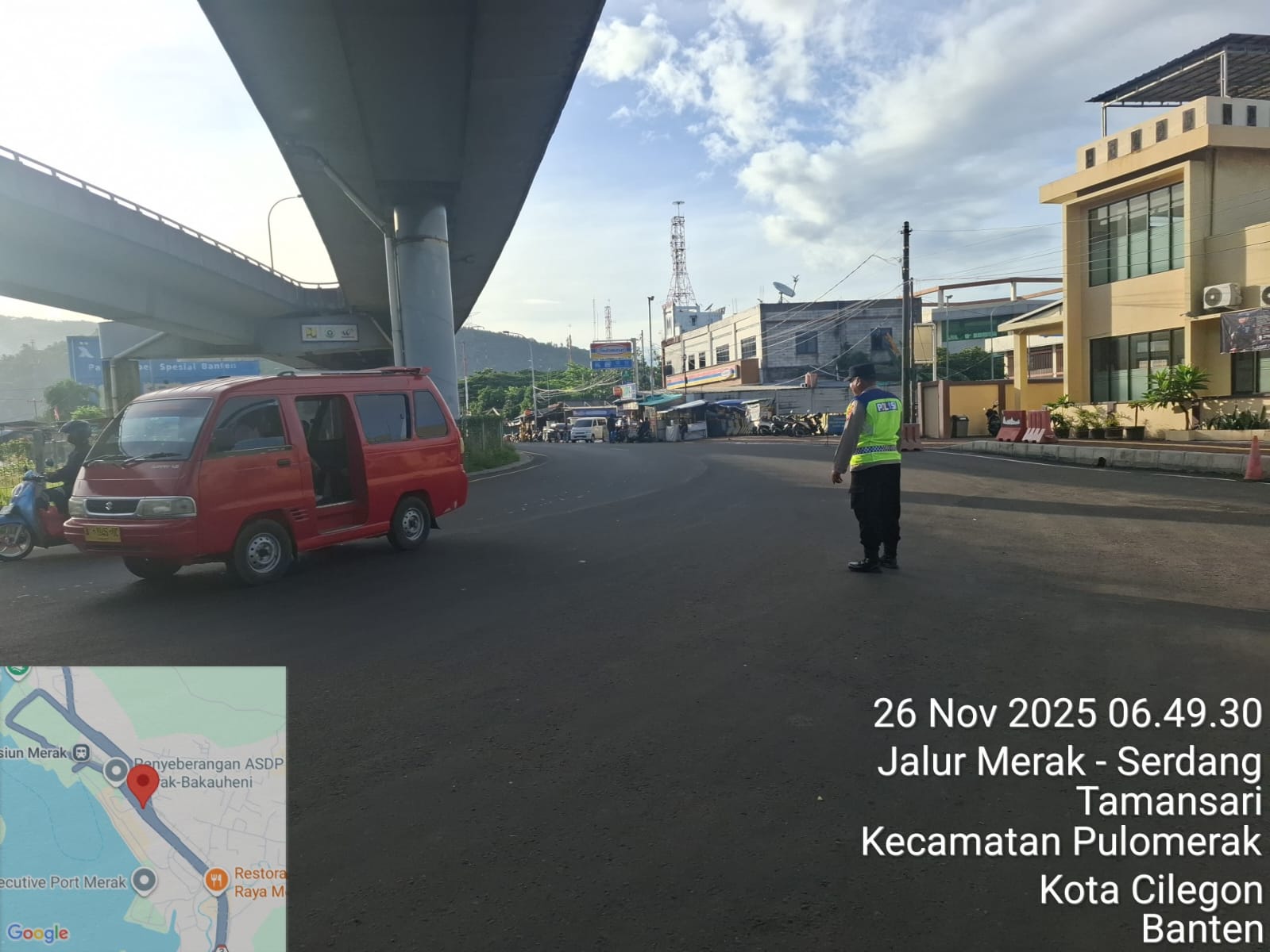 Cilegon - Dalam rangka peningkatan pelayanan prima kepada masyarakat, Kskp Merak Polres Cilegon Polda Banten melaksanakan pengaturan antrian R4 yang akan masuk ke Kapal Ferry di Pelabuhan Merak, Rabu (26/11/2025).