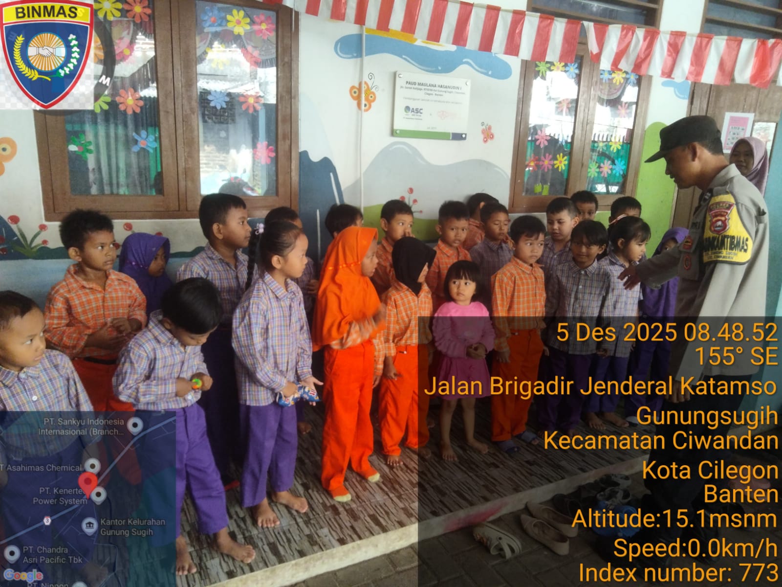 Cilegon - Kenalkan Sosok Polri Kepada Anak-anak,Bhabinkamtibmas Polsek Ciwandan Polres Cilegon Polda Banten AIPTU Tri Widodo melaksanakan kegiatan Polisi Sahabat Anak (PSA), Jum'at (05/12/2025).