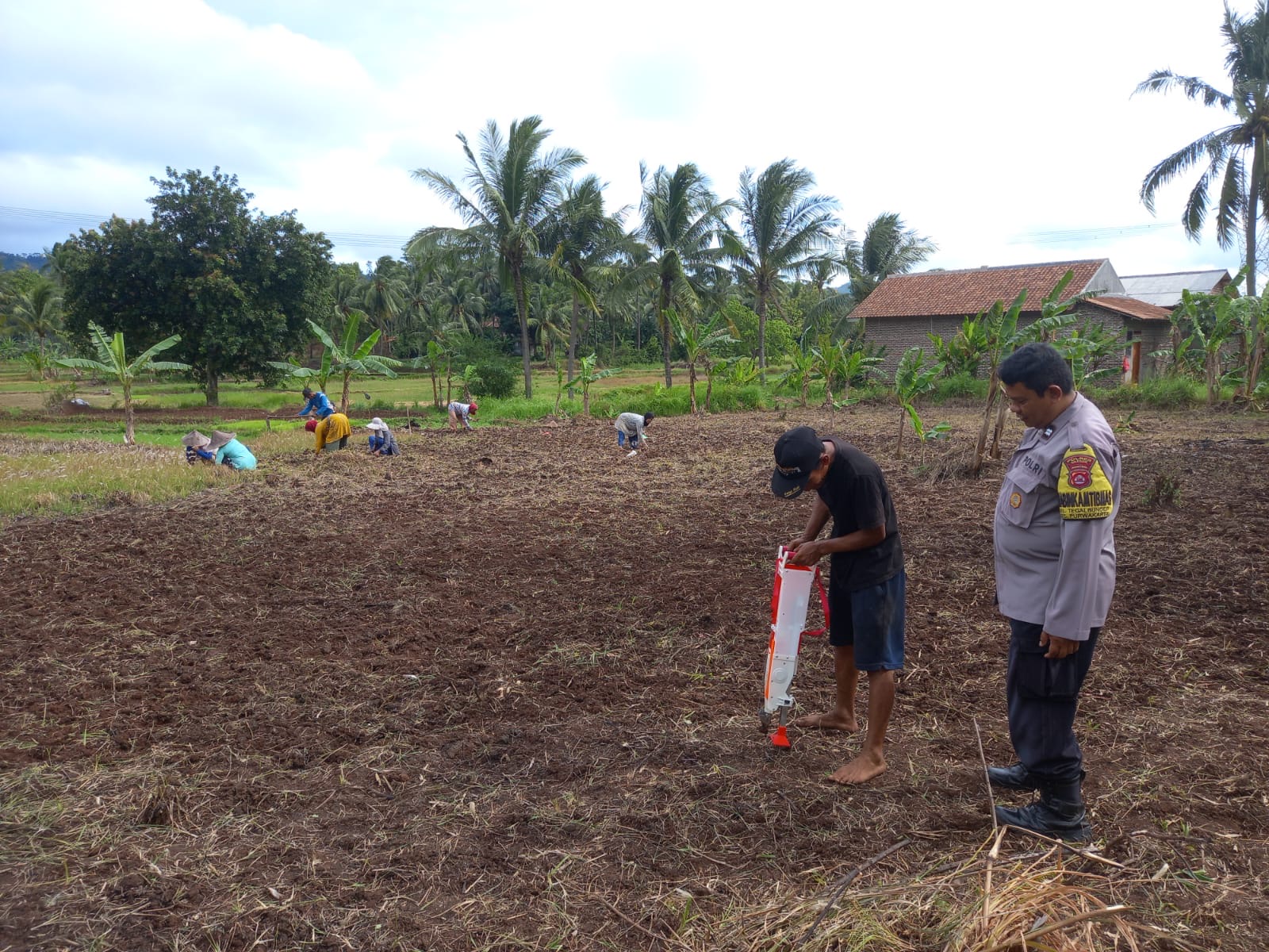 Kapolsek Purwakarta IPTU Sukanda dan perwakilan Kapolres Cilegon AKBP Martua Raja Taripar Laut Silitonga yang memberikan dukungan moral kepada para petani. Dalam kesempatan itu, Aiptu Wawan juga memberikan penyuluhan singkat tentang teknik penanaman jagung hibrida yang lebih efisien dan cara pencegahan hama untuk memaksimalkan hasil panen.