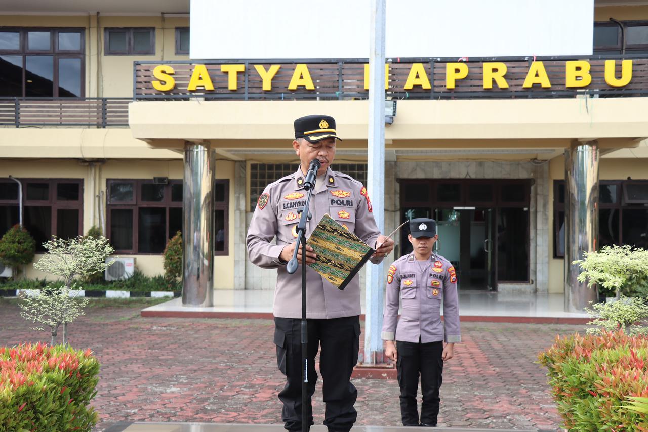 Apel tersebut digelar atas perintah Kapolres Cilegon AKBP Dr. Martua Raja Taripar Laut Silitonga, S.H., S.I.K., M.Si., dan dipimpin oleh Kabag SDM Polres Cilegon, Kompol Entang Cahyadi, S.H.