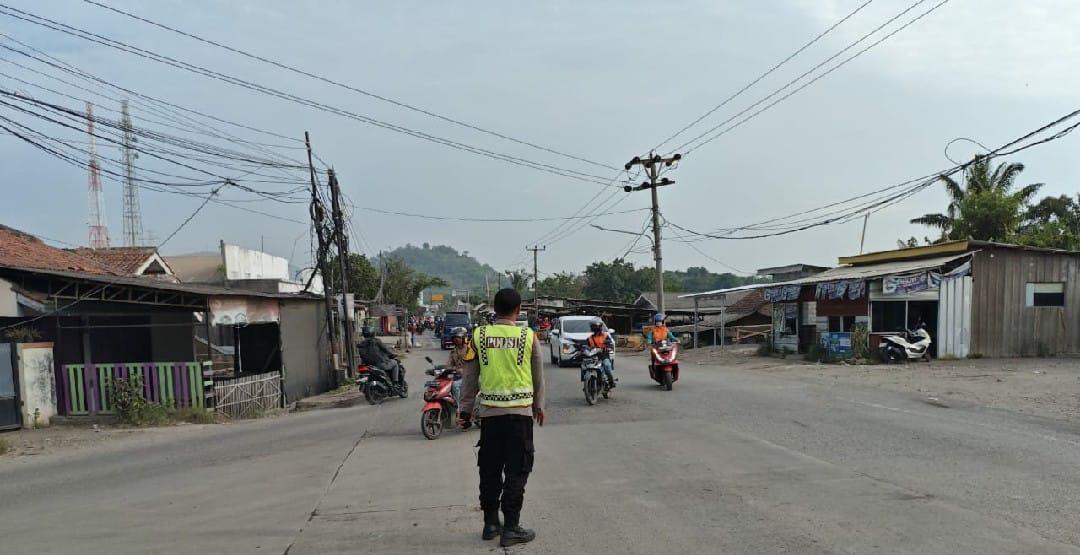 Demi Kelancaran dan Kenyamanan Pengguna Jalan, Bripka Gery & Dishub Laksanakan Gatur Lalu lintas Sore Hari Di Jalan Raya PT Apexindo Bojonegara