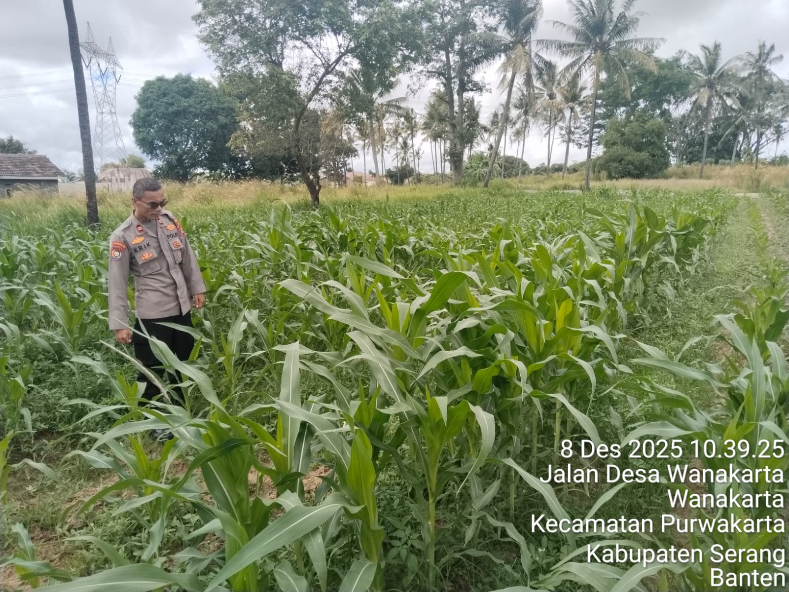 Cilegon - Melaksanakan program pemerintah, penanaman jagung dalam program ketahanan pangan, personil Polsek Kp Merak Polres Cilegon Polda Banten melaksanakan kegiatan peninjauan serta monitoring lokasi yang nantinya akan ditanami bibit jagung unggul di Desa Mangkunegara Kecamatan Bojonegara, Kabupaten Serang, Senin (08/12/2025).