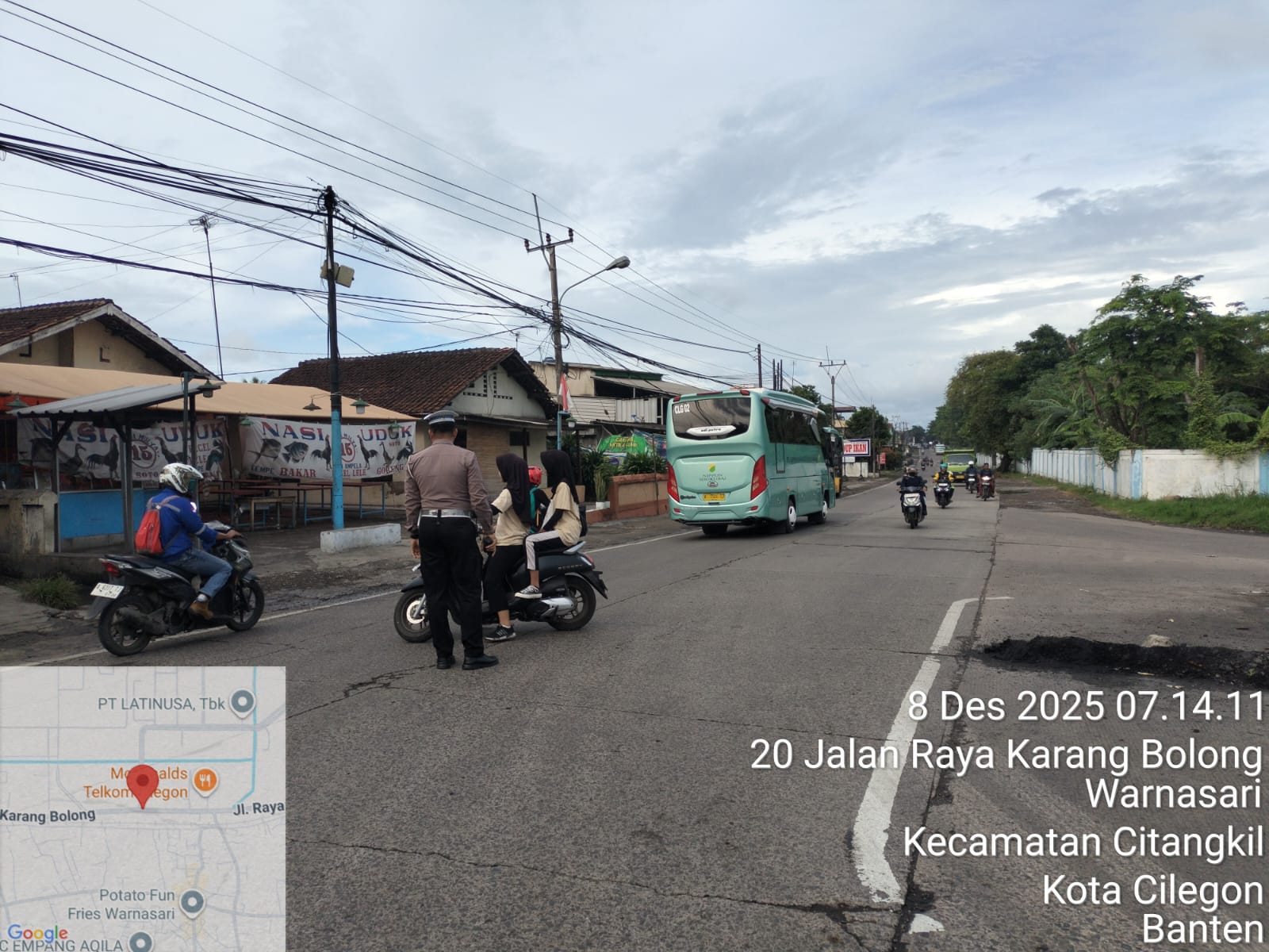 Cilegon - Personil  Polsek Ciwandan Polres Cilegon Polda Banten melaksanakan giat Strong Poin Pengaturan Lalu-Lintas guna menciptakan ketertiban, keamanan dan Kelancaran Lalu-lintas bagi masyarakat, Senin (08/12/2025).