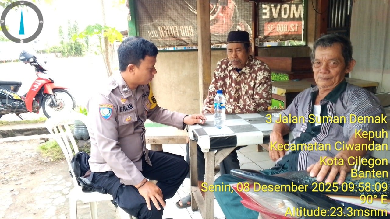 Cilegon - Bhabinkamtibmas Polsek Ciwandan Polres Cilegon Polda Banten melaksanakan kegiatan Sambang Dialogis Secara Door to Door Sistem (DDS) Di daerah Hukum Polsek Ciwandan, serta Berikan Pesan-pesan Kamtibmas Guna Menciptakan situasi Harkamtibmas yang Aman dan nyaman, Senin (08/12/2025).