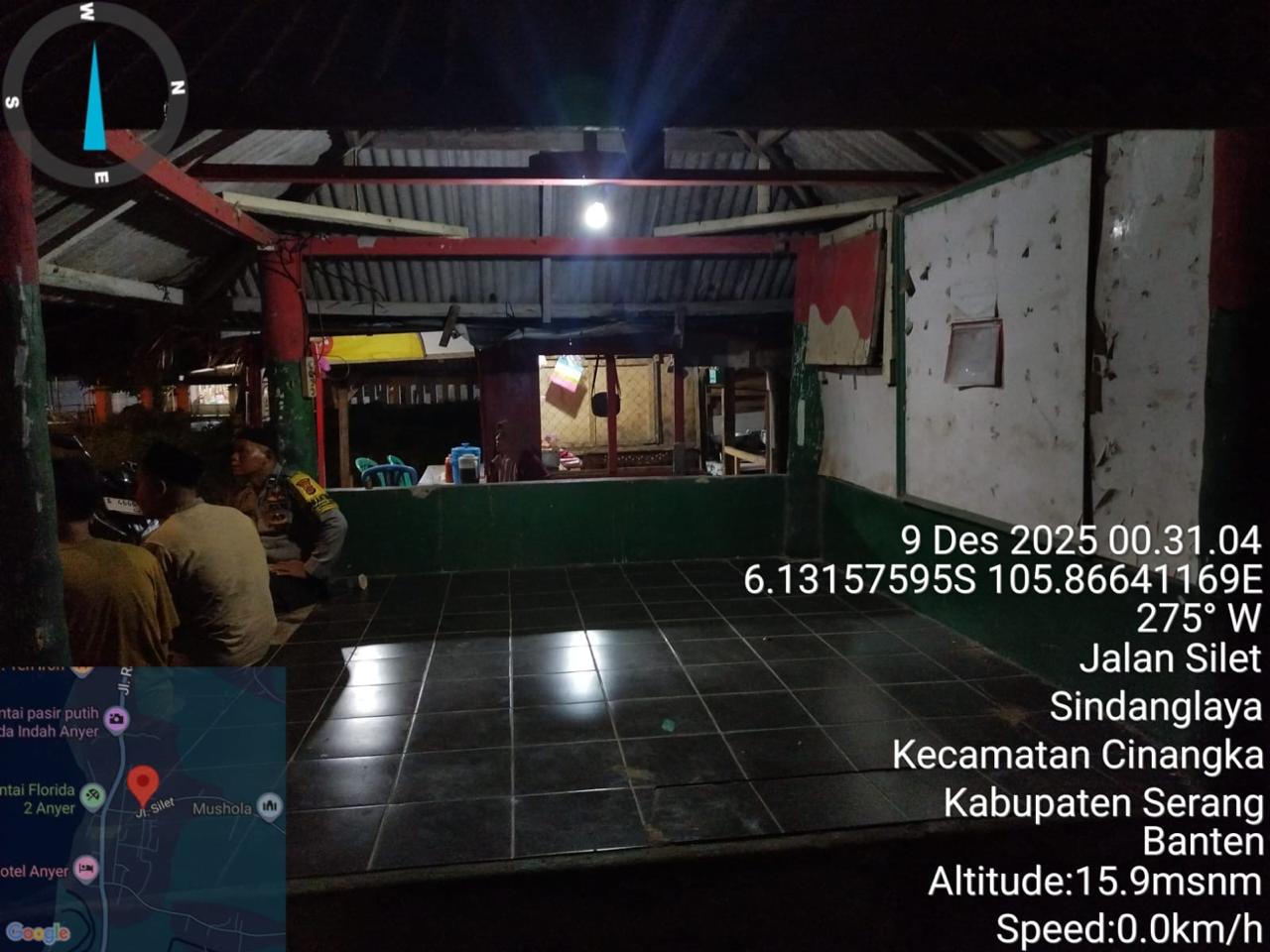 *Polres Cilegon* || Personel Bhabinkamtibmas Polsek Cinangka melaksanakan Program Komandan Wish Kapolda Banten RONDA SATKAMLING menyampaikan komunikasi dengan Petugas Siskamling agar berperan aktif dalam menciptakan Harkamtibmas yang aman dan Kondusif, Selasa (09/12/2025).