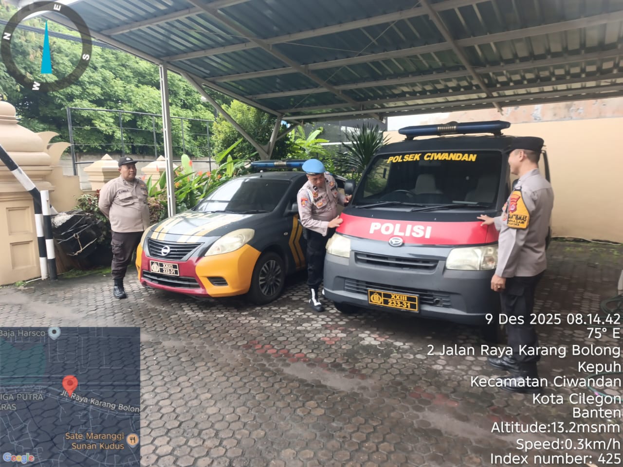 Cilegon - Ka SPKT Polsek Ciwandan Polres Cilegon Polda Banten Pimpin langsung pengecekan kendaraan Dinas Dan Inventaris Polsek Ciwandan Saat Serah terima Tugas Penjagaan, khususnya mobil patroli, Selasa (09/12/2025).
