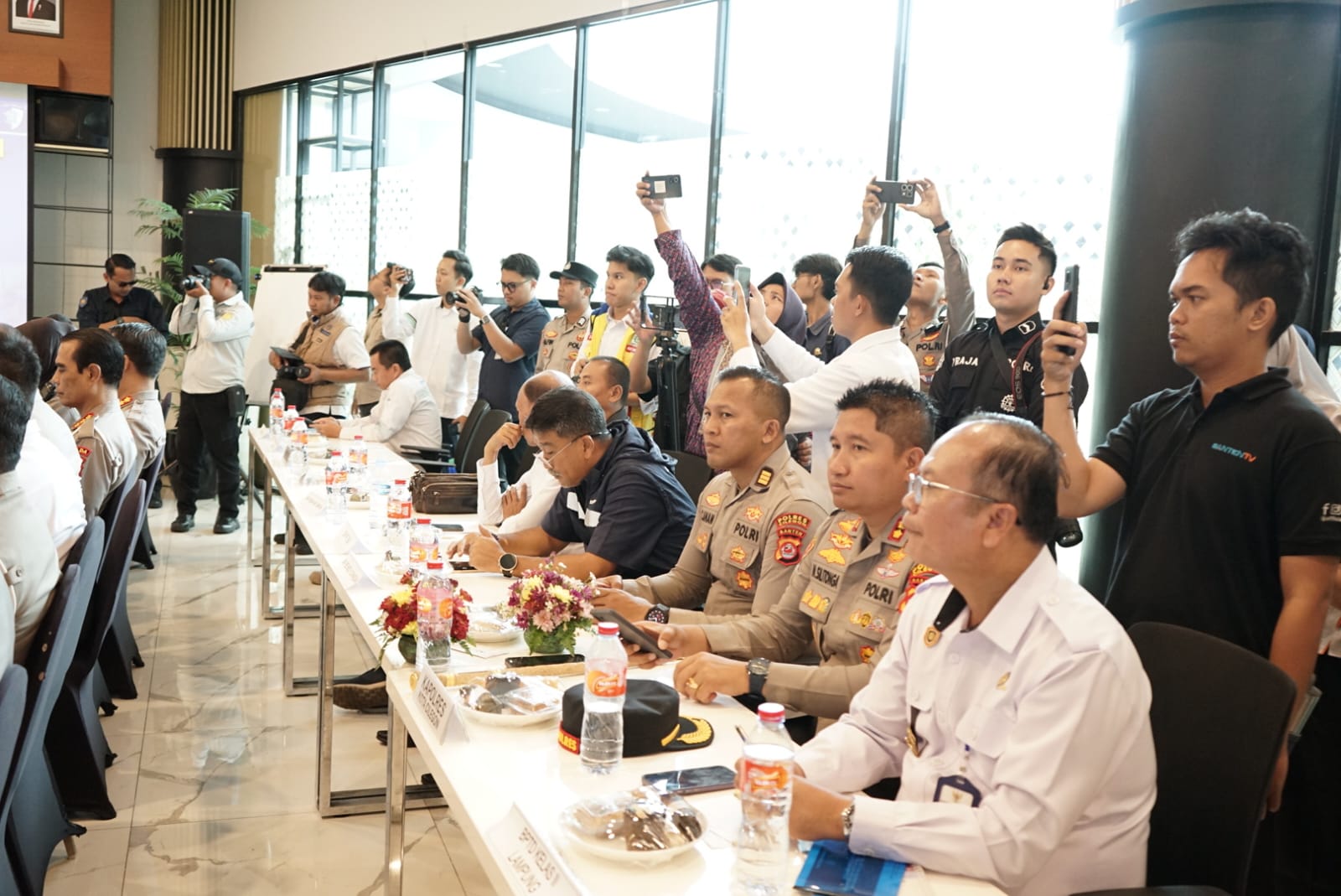 Polda Banten memaparkan kesiapan sarana prasarana, mulai dari Pelabuhan Merak dengan 7 dermaga dan 69 kapal, buffer zone PT Indah Kiat dengan kapasitas lebih dari 2.000 kendaraan kecil, hingga Pelabuhan Ciwandan dan Pelabuhan BBJ sebagai titik pendukung penyeberangan. Sejumlah pola rekayasa lalu lintas turut disiapkan, mulai dari pengalihan arus, delay system KM 43 dan 68, hingga skema satu arah menuju pelabuhan ketika terjadi kepadatan.