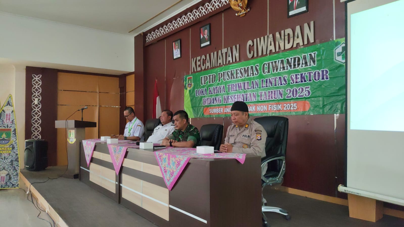 Cilegon - Wakapolsek Ciwandan Polres Cilegon Polda Banten AKP UUP M. Ma'ruf menghadiri kegiatan Lokakarya Mini Lintas Sektor Kesehatan UPTD Puskesmas Ciwandan Tahun 2025 Di Aula Kantor Kecamatan Ciwandan, Rabu (10/12/2025).