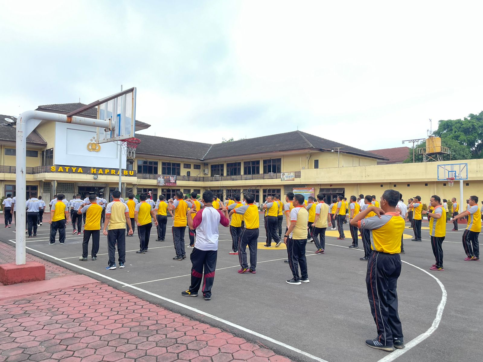 Cilegon,Polres Cilegon Polda Banten Pada Jumat/12/12/2025 Pukul 07.15 Wib, Personil  Polres Cilegon, melaksanakan kegiatan olahraga mandiri di lapangan Polres Cilegon dan melaksanakan senam aerobik di Lapangan polres cilegon.
