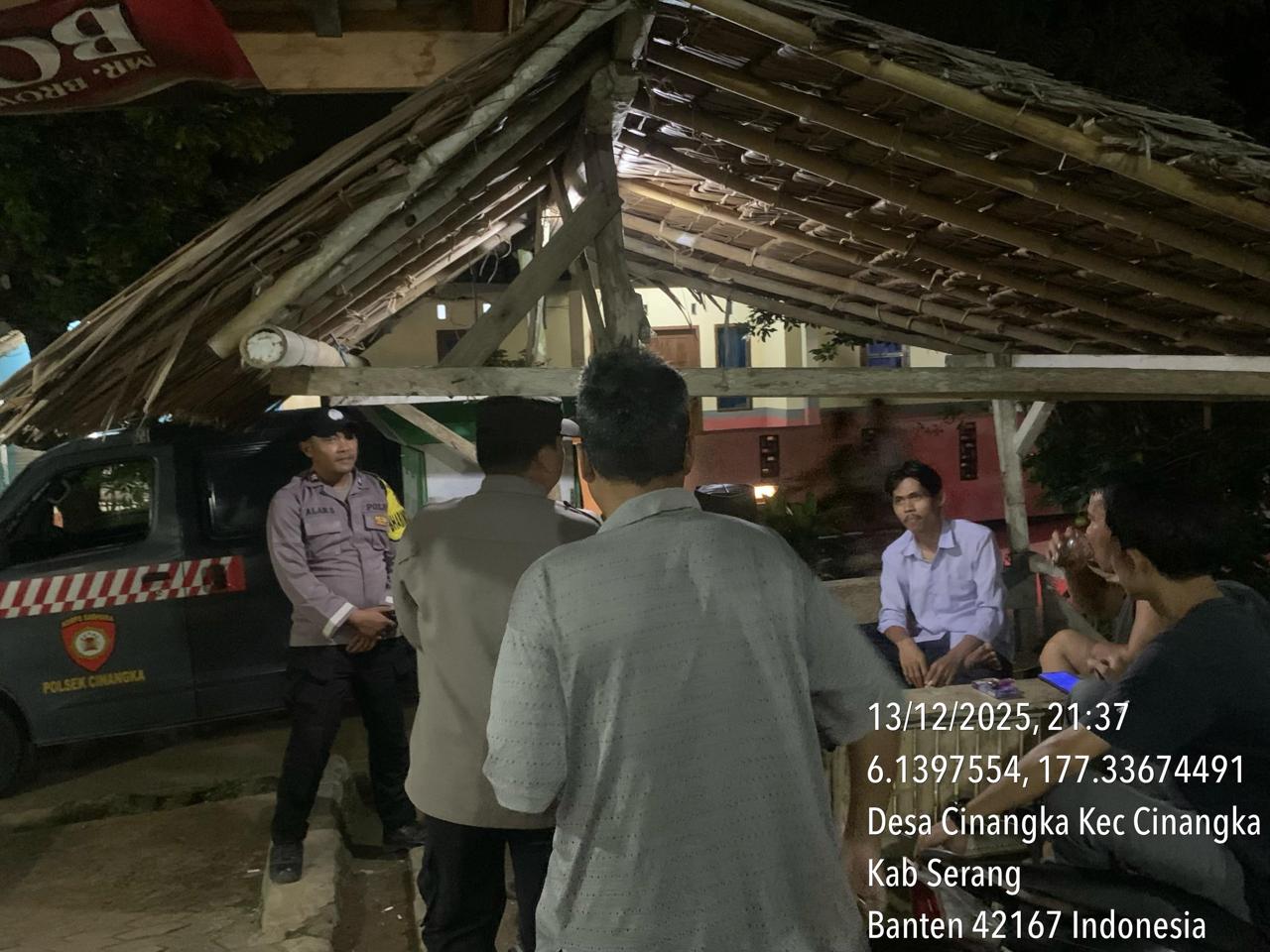 *Polres Cilegon* || Personil Bhabinkamtibmas Polsek Cinangka melaksanakan Program Komandan Wish Kapolda Banten RONDA SATKAMLING menyampaikan komunikasi dengan Petugas Siskamling agar berperan aktif dalam menciptakan Harkamtibmas yang aman dan Kondusif, Minggu (14/12/2025).