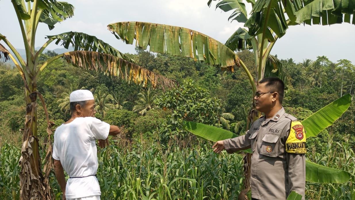 Anggota Bhabinkamtibmas Polsek Anyar Melakukan Cek Pertumbuhan Tanaman Jagung