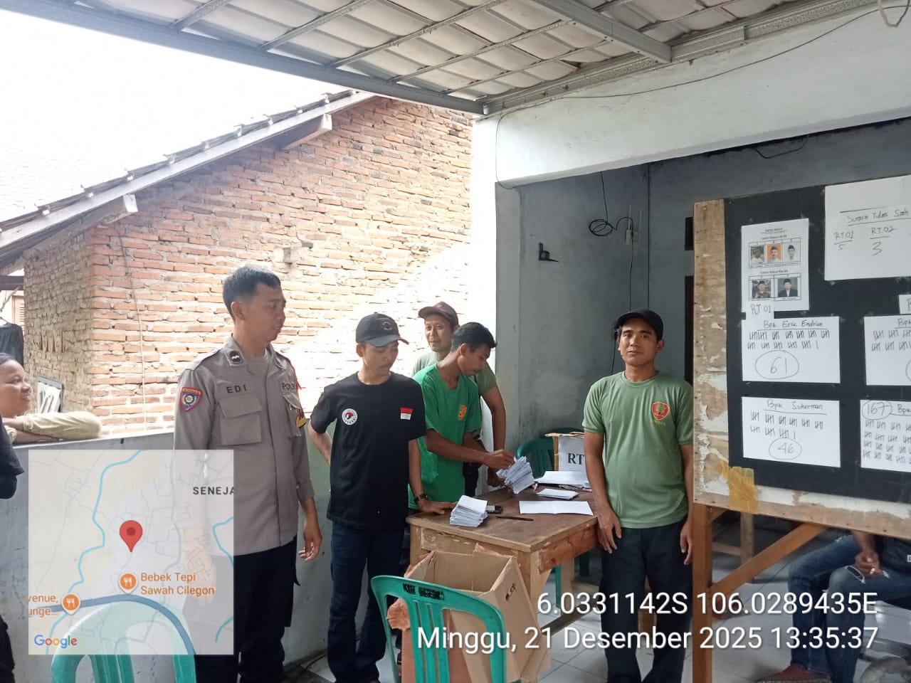 *Cilegon* - Bhabinkamtibmas Kelurahan Tamanbaru Polsek Ciwandan Polres Cilegon Polda Banten AIPDA Ediyanto menghadiri pemilihan Ketua RW 003 Lingkungan Kubang Lesung kelurahan Tamanbaru Kecamatan Citangkil Kota Cilegon, Minggu (21/12/2025).