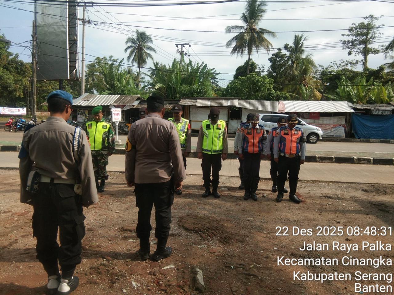 *POLRES CILEGON* Polda Banten. Menjaga kegiatan dan memastikan Aman Polsek Cinangka Polres Cilegon terjunkan Petugas menjaga pengamanan kegiatan PAM Natal dan tahun baru di Pospam Cinangka Kecamatan Cinangka. Senin (22/12/2025).