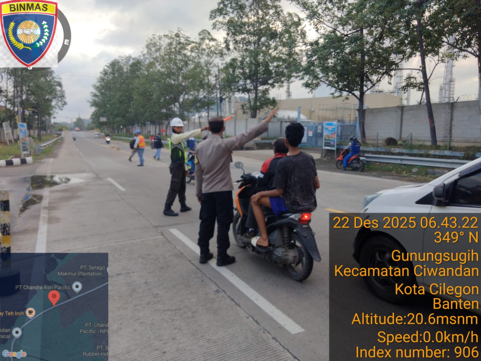 Cilegon – Berikan Pelayanan Kepada Masyarakat Personil Polsek Ciwandan Polres Cilegon Polda Banten melaksanakan pengaturan di titik kepadatan Arus Lalu-lintas Yang Ada Di daerah Hukum Polsek Ciwandan, Jum'at (23/12/2025).