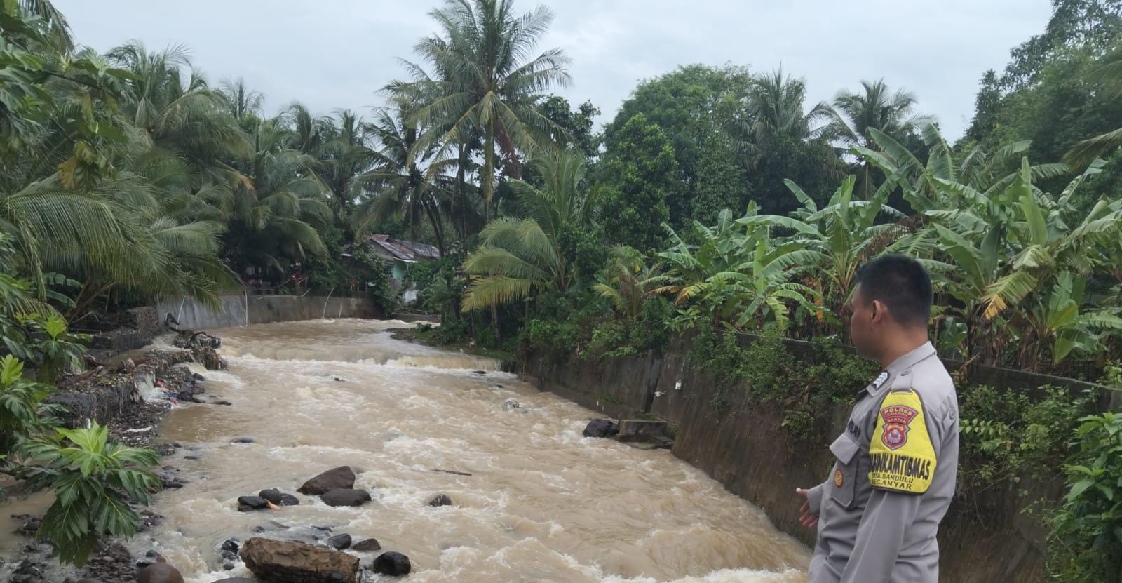 Lakukan Patroli Anggota Polsek Anyar Pantau Debit Air Sungai Wilayah Pasca Hujan