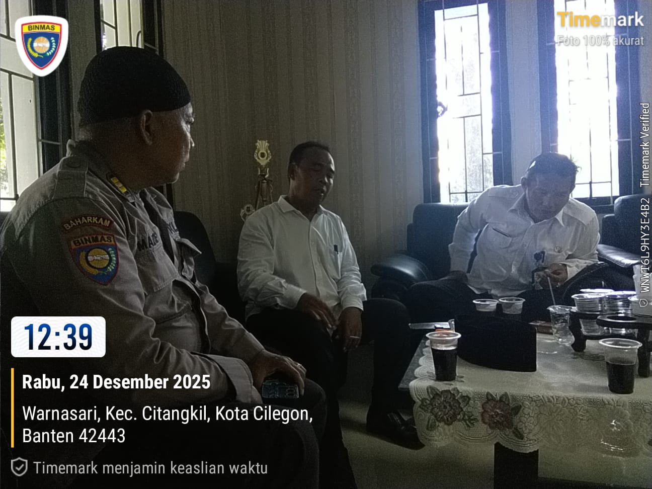 Cilegon - Kali ini Wakapolsek Ciwandan AKP Uup M. Ma'ruf Dan Bhabinkamtibmas Kelurahan Warnasari Polsek Ciwandan Polres Cilegon Polda Banten BRIPKA Heri Siswantoko melaksanakan kegiatan sambang Dialogis Dan silaturahmi Bersama Lurah Dan Staff Warnasari Kecamatan Citangkil Kota Cilegon, Rabu (24/12/2025).