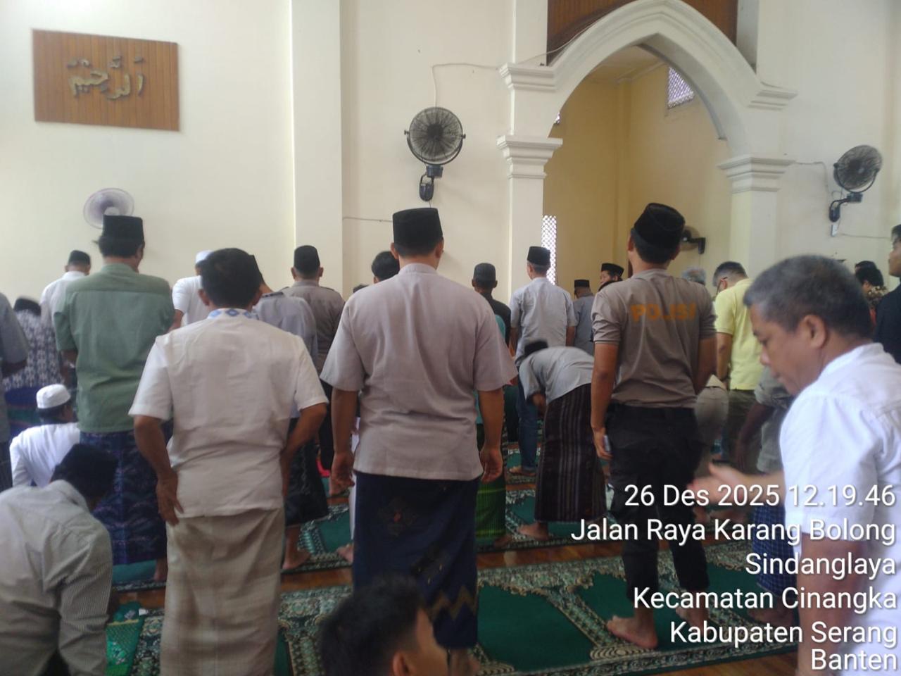 *POLRES CILEGON* - Kapolsek Cinangka Polres Cilegon Polda Banten dan Jajaran melaksanakan giat Juma't keliling dalam rangka silaturahmi menjalin kemitaraan dan menjaga Harkamtibmas di Desa Binaannya sebagai bentuk mendukung Program Quick Wins Presisi Polri, Jumat (26/12/2025).