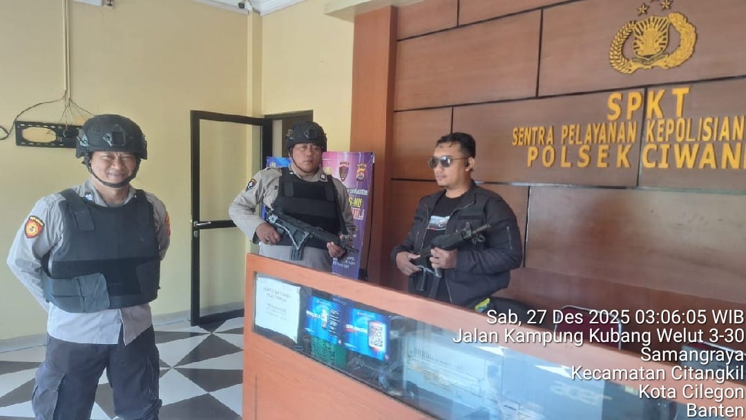 Cilegon - Guna mengantisipasi adanya potensi ancaman dan gangguan terhadap keamanan kantor maupun keselamatan personel piket jaga, Personil Polsek Ciwandan Polres Cilegon Polda Banten selalu tingkatkan kesiapsiagaan dan kewaspadaan dengan rutin menggelar kegiatan Sistem Pengamanan Mako (Sispam Mako), Sabtu (27/12/2025).